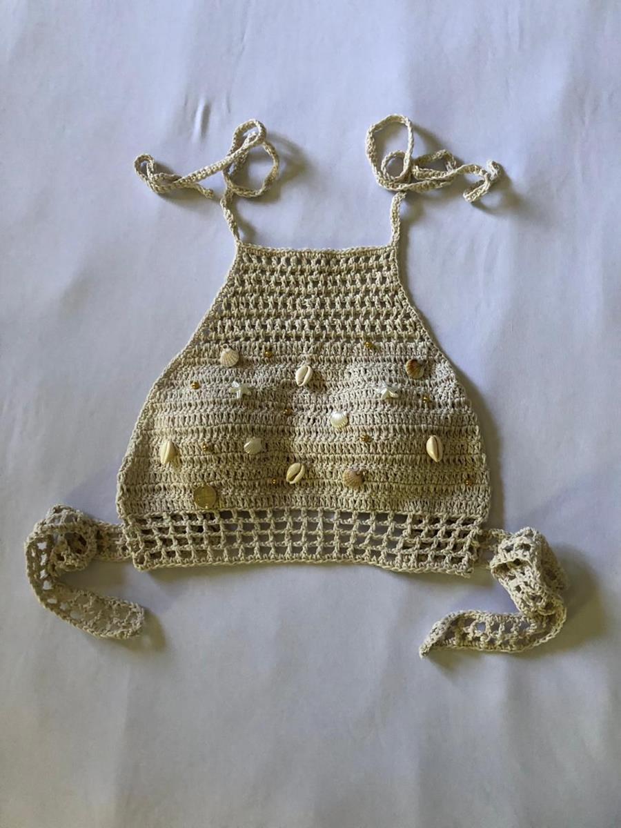 Nossos tops são feitos com fios de algodão de alta qualidade que são macios ao toque e garantem conforto durante todo o dia. O crochê é habilmente trabalhado por artesãos talentosos, o que resulta em um acabamento perfeito.